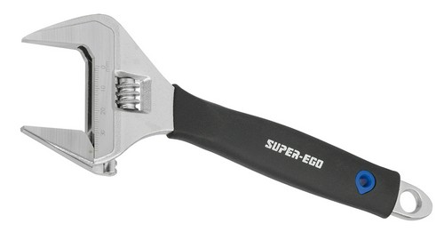 LLAVE AJUSTABLE SUPER EGO. 8", forjada en acero especial, cromada, escala en mm. y pulgadas, gran apertura hasta tubo de 400mm.diam. longitud 200mm.