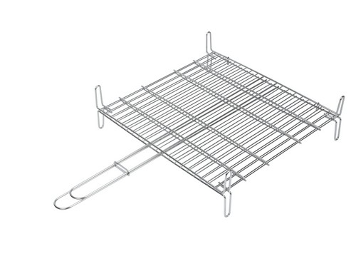 Parrilla reforzada, con más varillas y más gruesas que las parrillas convencionales. Grueso de las varillas: 35 mm. Superfície de cocción: 40x45 cm. Patas dobles de 7,5 cm de alto, con una altura total de 15,5 cm. Mango de 37 cm. con cierre de segurida d, que permite un giro fácil y seguro. Fabricada en acero inoxidable 188 (AISI 304) electropúlido. Apta para lavavajillas. Fabricación nacional.