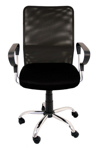 Silla de estudio con apoyabrazos, asiento regulable en altura, acabada en textil con rejilla transpirable en el respaldo, color negro, base cromada.Tamaño asiento 47X46cm, dimensiones respaldo 66X44cm. Dimensiones totales : 51.50x113x63.5cm