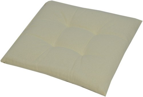 Cojin cuadrado con lazos y puntadas; Tejido mixto de Algodón Poliester; Relleno de poliester y Poliuretano expanso.