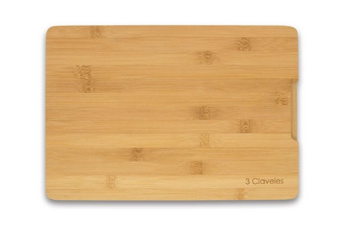 tabla de corte de bambú. para cortar y picar alimentos.medidas: 33 cm x 23 cm x 2 cm.protege el filo de los cuchillos.colocar siempre en una superficie plana.